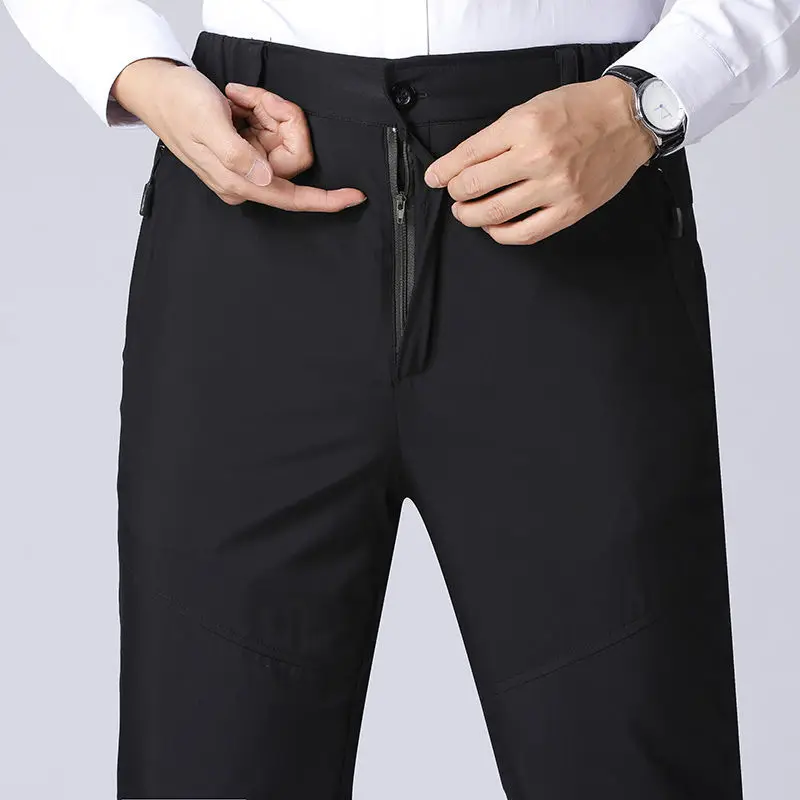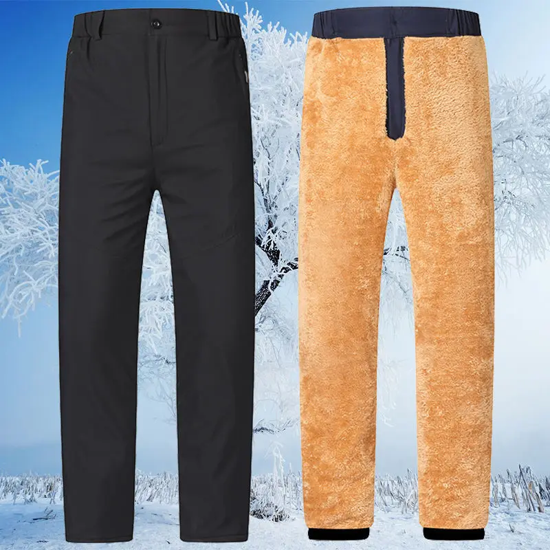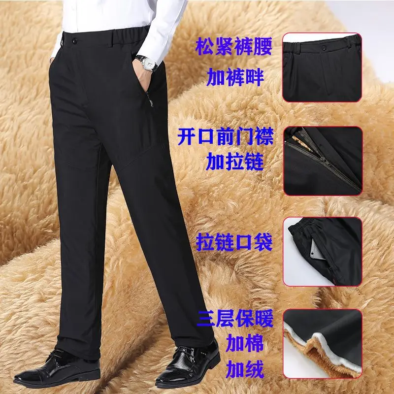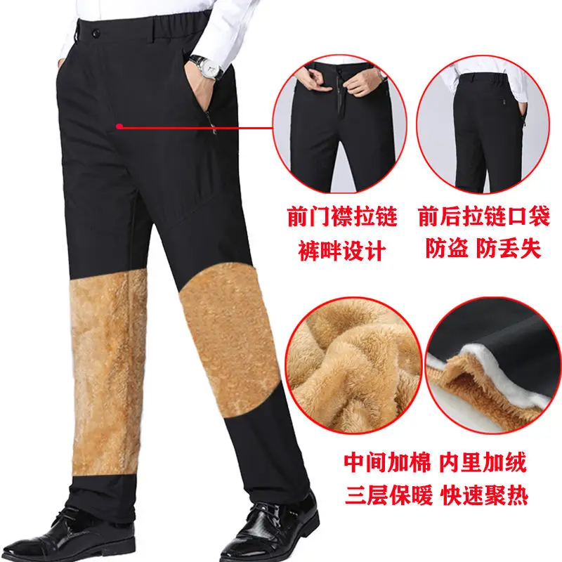 Winter Men's Three-layer Thickened Cotton Trousers with extra Padding for Warmth Loose Large Size High-waisted Pants
